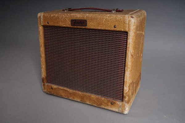 The Fender Champ was a guitar amplifier made by Fender introduced in 1948 and discontinued in the early 80s. I could put my hands once on an authentic Fender Champ-Amp (just like the one in the gallery below) from the late ’50s and I was immediately fascinated by its simple construction and characteristic sound.