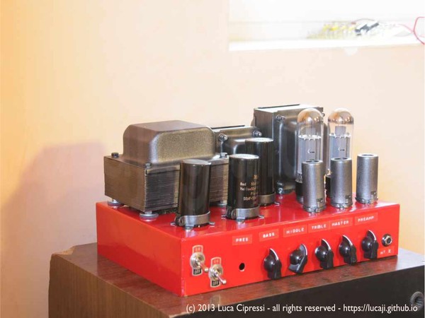 This build is my favourite and I plan to spend more time on it, as it is an ideal project to learn how to build tube-amps and it gives lots back in term of satisfaction when playing with it.